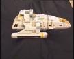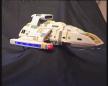 Mit eingebauter, im Orginalbausatz nicht enthaltener Beleuchtung: in jeder Warpgondel sind 4 blaue und 3 rote LED´s und im Sensoraufbau nochmals 2 blaue und 2 gelbe LED´s (mit passenden Vorwiderständen) eingebaut. Die Eingansspannung liegt bei 4,5 - 6 V. Auf dem vorletzten Bild (rio14.jpg) ist unter dem Heckfenstern in der Mitte die Mutter zu sehen, welche die 3,5 mm Klinkenbuchse für die Stromversorgung im Rumpf hält. Die Kabel (Flachband) verlassen den Rumpf rechts und links dort wieder wo die Träger der Warpgondeln am Rumpf befestigt sind. In den Trägern sind an der Klebefläche einfach Löcher gebohrt, durch die die Kabel in die Warpgondeln gelangen. Auf der Oberseite eines Trägers wurde noch ein Loch gebohrt um die Flachbandleitung durch die Halterung des Sensoraufbaus nach oben zu bringen. Der Platz im Aufbauträger ist gerade so für die Flachbandleitung ausreichend. Es ist empfehlenswert die Teile, in die LED´s eingeklebt werden, vorher auf der Innenseite schwarz zu bemalen um ein durchscheinen des Lichtes durch das Plastik im Bereich um die LED zu vermeiden. Das glit natürlich nicht für die Klarsichtteile. Dort wurde von der Innenseite mit Klarlack in rot bzw. blau bemalt. Dieses sollte mehrfach geschehen um eine ausreichende Farbdicke zu bekommen.